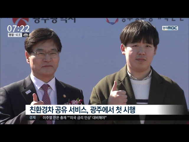 (앵커) 짧은 시간동안 차량을 빌려쓰는 공유경제 서비스, '카 셰어링'이 인기를 끌고 있습니다. 이런 흐름에 발맞춰 수소나 전기차를 활용한 차량 공유 서비스가 전국 최초로 광주에서 시작됐습니다. 이계상 기자.. (기자) 광주시청 앞 광장에서 친환경 차량들이 줄지어 주행을 시작합니다. 매연을 뿜어내지않고 공해 발생...