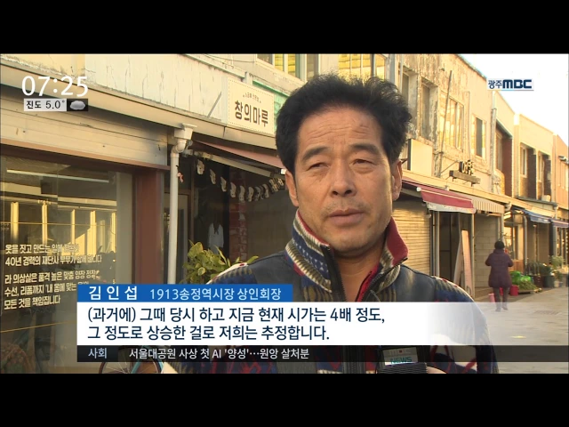 (앵커) 전국적으로 볼 때 광주는 땅값이 많이 오르는 곳이 아니죠.. 그런데 송정역 일대는 그렇지 않습니다. 이른바 역세권 효과 때문인데.. 땅값 상승세가 당분간 지속될 것으로 보입니다. 정용욱 기자입니다. (기자) 광주 송정역에서 걸어서 3분 거리에 있는 1913 송정역시장.. 하루 평균 3-4천명이 오갈 만큼 시장이 활...