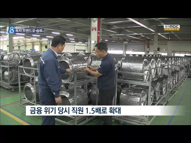 (앵커) 대기업 가전 협력업체로 출발해 지역기업으로서는 드물게 완성품 가전 시장에 명함을 내민 강소기업이 있습니다. 이 업체는 독자 브랜드를 통해 광주 금형산업의 대표주자를 꿈꾸고 있습니다. 정용욱 기자입니다. (기자) 육중한 금형 프레스가 위아래로 쉼없이 움직입니다. 4대가 함께 작동하면서 시간당 360개의 냉...