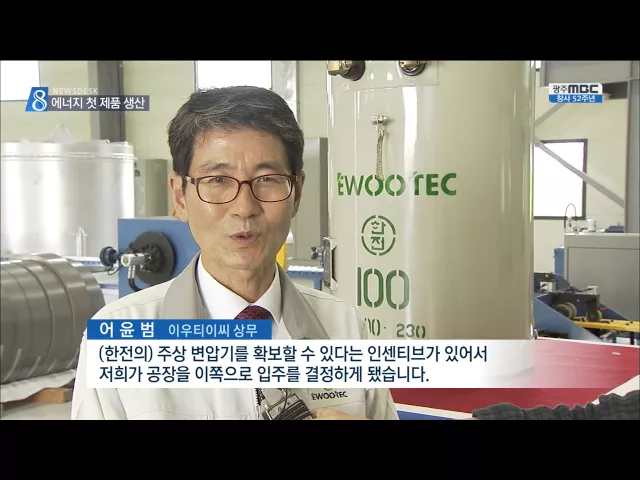 (앵커) 광주,전남 에너지 신산업의 핵심 거점이 될 것으로 기대를 모으고 있는 곳이죠 나주 혁신도시 빛가람 에너지 밸리 이야기입니다. 이 곳에서 첫 제품이 생산됐습니다. 에너지 밸리 조성에 가속도가 붙을 전망입니다. 정용욱 기자입니다. (기자) 2만 2천 볼트가 넘는 고압의 전기를 가정에서 쓸 수 있도록 저압으로 바...