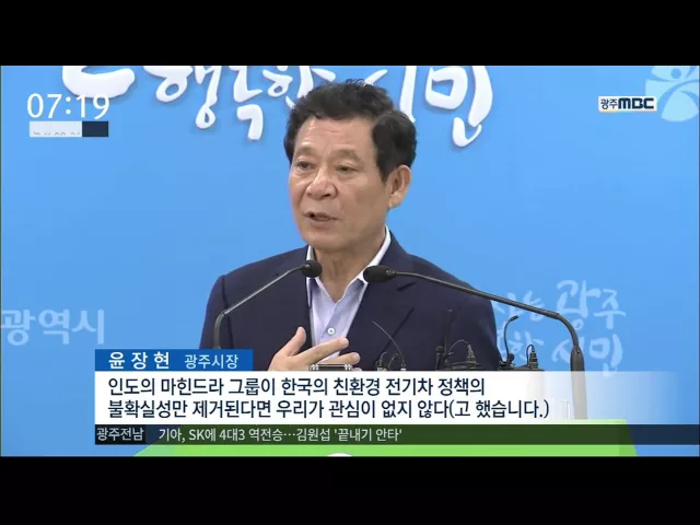 (앵커) 국내외 자동차 기업들이 광주 투자에 관심을 나타내고 있습니다. 자동차 시장 변화와 정부의 지원 등이 복합적으로 작용한 것으로 보입니다. 윤근수 기자 (기자) 지난 3월, 광주에 투자를 약속한 중국의 조이롱 자동차는 이달 중에 한국 법인을 설립할 예정입니다. 쌍용차를 생산하는 인도의 마힌드라 그룹도 전기차...