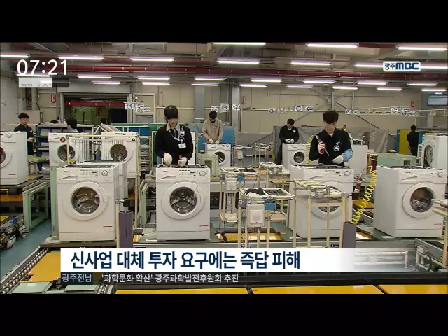 (앵커) 삼성전자 광주사업장의 어떤 생산 라인을 언제 어디로 옮기는 지, 또 그러면 대신 다른 사업에 투자할 의향이 있는 지 밝히라는 광주시의 요구에 삼성전자가 응답했습니다. 삼성전자의 응답은 뜨뜻미지근했습니다. 김인정 기자가 취재했습니다. (기자) 삼성전자의 가전부문을 총괄하는 서병삼 부사장이 윤장현 광주...