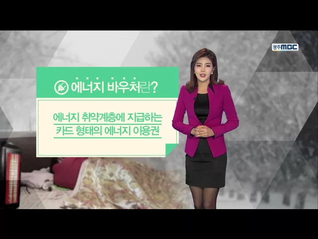 ◀ANC▶ 에너지 취약계층을 위한 에너지 바우처 제도가 올해부터 시행되고 있지만 몰라서 이용을 못하는 분들이 많습니다. 어떻게 하면 되는 지 김은수 기상캐스터가 알려드립니다. ◀END▶ 없는 사람들에게는 겨울나기가 더 버겁다고 하죠. 난방비 부담 때문에 나온 말인데요. 에너지 빈곤층들을 위한 바우처 제도가 올...
