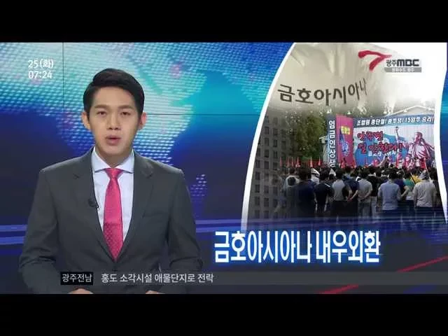 (앵커) 금호아시아나 그룹이 내우외환으로 골머리를 앓고 있습니다. 핵심 계열사인 금호타이어는 일주일 넘게 파업 중이고, 금호산업 인수전도 장기화가 불가피한 상황입니다. 조현성 기자 기자 (cg) 오늘 하루 금호산업의 주가는 5.5%, 금호타이어의 주가는 3%가 떨어지는 폭락세를 보였습니다. 중국 증시의 급락 여파 속...