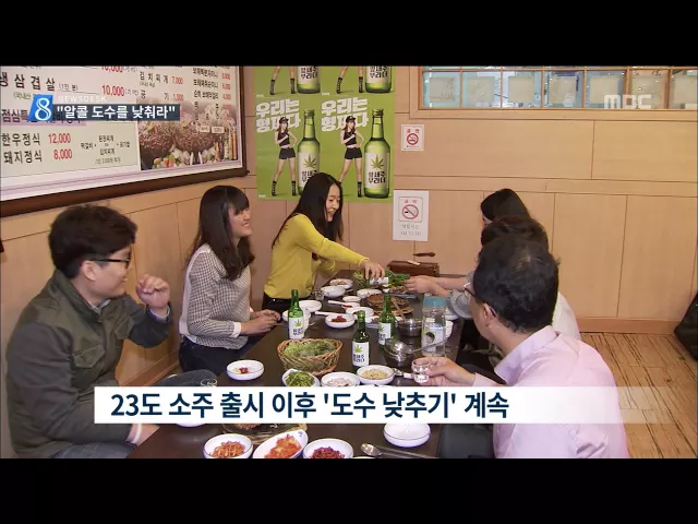 앵커 소주업계가 경쟁적으로 알콜 도수를 낮추고 있습니다 소비자 입맛도 맞추고, 원가도 절감할 수 있어 소주업계의 도수 내리기 경쟁은 당분간 계속될 전망입니다. 조현성 기자 기자 광주,전남에 기반을 둔 보해양조가 새롭게 시장에 내놓기 시작한 소줍니다. 알콜 도수가 17.5도로, 형님격인 기존 제품보다 도수가 1.5도...