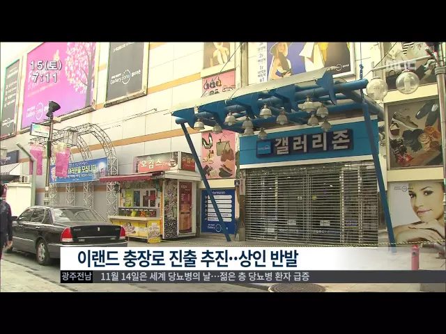 ◀ANC▶ 충장로 일대가 대기업들의 전쟁터로 변하면서 자영업자들이 설자리를 잃어가고 있습니다. 최근엔 대기업과 소상공인들의 갈등까지 빚어지고 있습니다. 이재원 기잡니다. ◀END▶ ◀VCR▶ 광주 도심의 상징, 충장로 곳곳에 대형 현수막이 내 걸렸습니다. 인접한 곳에 위치한 대기업 쇼핑몰의 주인, 이랜드 그룹을...
