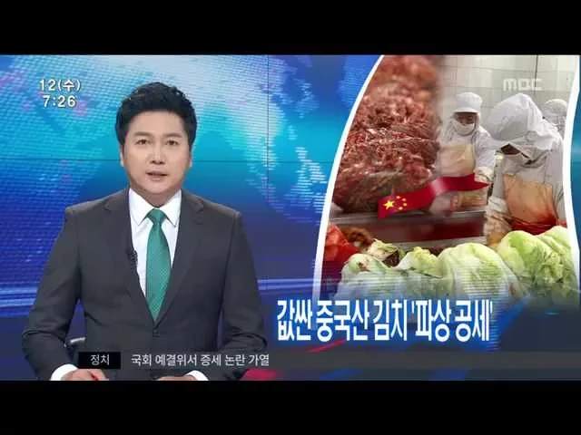 ◀앵 커▶ 한.중FTA 타결로 국내 김치시장은 중국산 김치의 저가 공세가 더 거세질 것으로 보입니다. 배춧값 폭락으로 가뜩이나 힘든 해를 보내고 있는 김치 가공업계는 더이상 버티기 힘들다는 하소연입니다. 문연철 기자가 보도합니다. 한중 FTA 타결로 중국산 김치에 대한 관세가 현행 20%에서 최대 2% 포인트 떨어지게 됩...