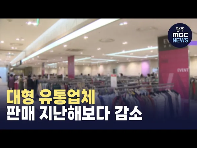 백화점과 대형 마트의 판매가 지난해보다 감소한 것으로 나타났습니다. 호남지방통계청에 따르면 지난 4월 백화점과 마트 등 광주의 대형 소매점의 판매는 지난해 같은 기간에 비해 3.7% 줄었습니다. 같은 기간 백화점은 6.5% 감소했고 대형마트는 2% 줄었습니다. 특히 가전제품이 25%, 신발과 가방은 10% 이상, 오락과 취...
