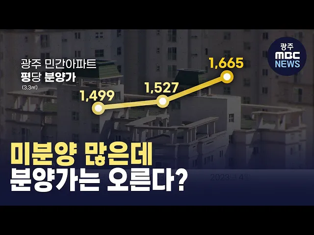 (앵커) 광주에 평당 아파트 분양가가 3천만원이 넘는 아파트가 생겨날 정도로 분양가 고공행진이 멈출 줄 모르고 있습니다. 미분양 물량이 많고 매매 등 주택 거래는 위축된 상황에서 .. 이같은 오름세가 청약 등 주택시장과 지역경제 전반에 악영향을 미치지 않을까 우려하는 목소리도 나오고 있습니다. 한신구 기자의 보...