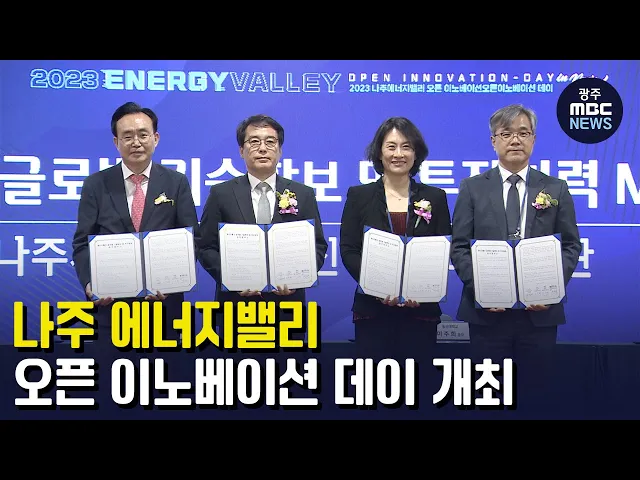 전남테크노파크와 나주시 등 관련 기관 25곳이 오늘(25일) 동신대학교에서 '2023 에너지밸리 오픈 이노베이션 데이' 행사를 열었습니다. 이번 행사에는 에너지밸리 내 기업 40여 곳과 관련 기관이 참여해, 전문가 강연과 연구개발 성과 발표, 기술 확보와 투자협력을 위한 MOU 체결 등을 진행했습니다. 에너지밸리는 한전과...