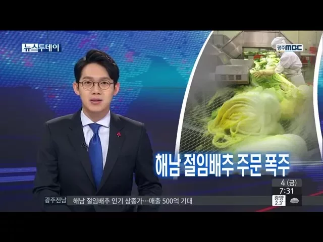 ◀ANC▶ 배추 주산지 하면 땅끝 해남이 먼저 떠오르는데요. 김장철인 요즘 해남은 전국 각지에서 절임배추 주문이 밀려들면서 즐거운 비명을 지르고 있습니다. 문연철 기자가 보도합니다. ◀END▶ ◀VCR▶ 국산 천일염에 절인 싱싱한 배추를 깨끗히 씻고 포장지에 담습니다. 요즘 간편함 때문에 큰 인기를 끌고 있는 절...