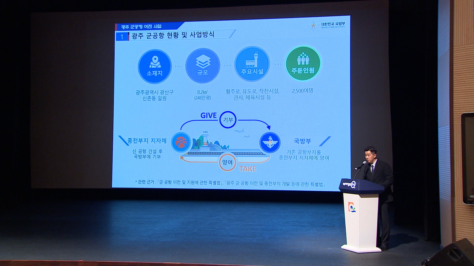 국방부가 오늘(1) 무안군 승달문화예술회관에서 주민설명회를 열고 군 공항 이전 지원 계획을 발표했습니다.이 자리에서 국방부는 기부대양여 차액 6천4백억 원과 광주시 1천5백억 원 등 1조 원이 넘는 금액을 지원할 예정이라고 밝혔습니다.특히 햇빛연금 등 에너지 주민 기본소득 지원사업을 추진하고 소음 피해에 따른 ...