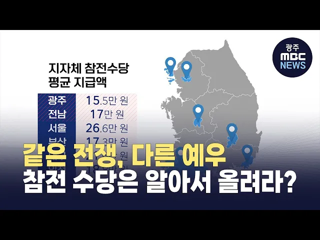(앵커)지방자치단체 분담률이 문제인 것은 비단 소비쿠폰만의 문제는 아닙니다.전쟁에 참전한 참전용사들에게 지급되는 명예수당도 마찬가지인데요.정부에서 주는 수당에 자치단체가 따로 주는 수당이 제각각이어서 그런데 개인별로 최대 50만 원이 차이나기도 합니다. 특히 광주와 전남은 명예수당 지급액이 전국 최하위 ...