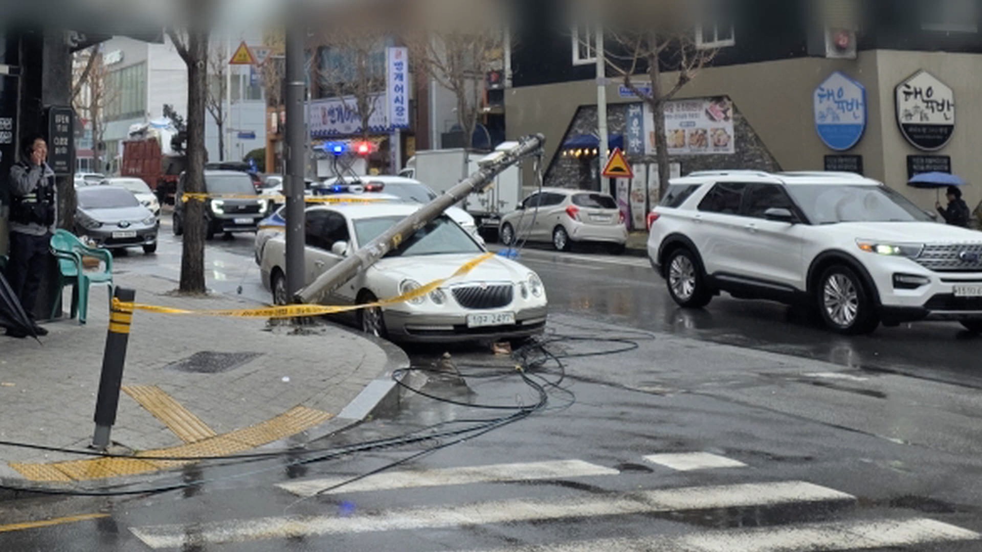 광주서 전신주 쓰러져.. 차량 1대 파손