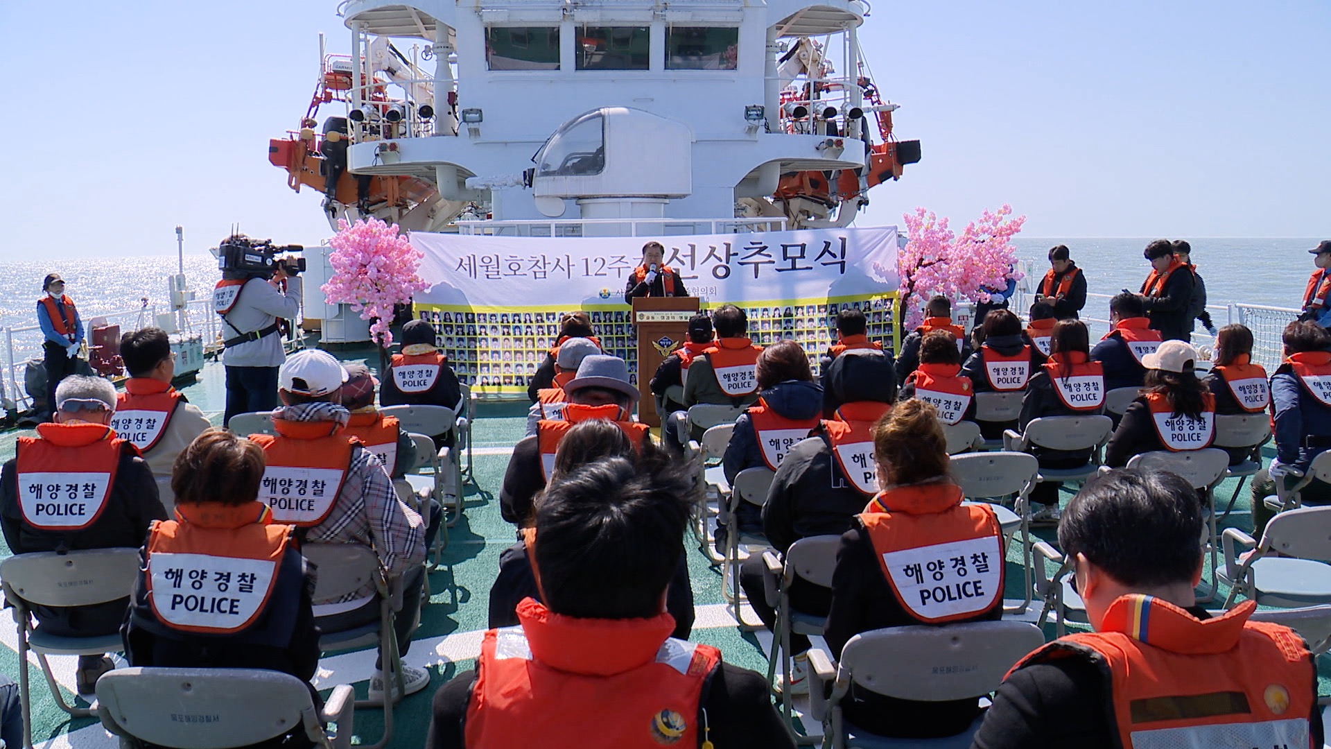 세월호 참사 12년을 맞은 오늘(16)진도군 맹골수도 사고 해역에서선상추모식이 열렸습니다.세월호 참사 유가족들과 4.16재단은 오늘(16) 오전 세월호 침몰 해역으로 이동해희생자들에게 헌화하고, 이름을 호명하는 등희생자들의 넋을 위로했습니다.이들은 추도사를 통해"12년이 아니라 억만 번의 계절이 지나도 너희는 영원...