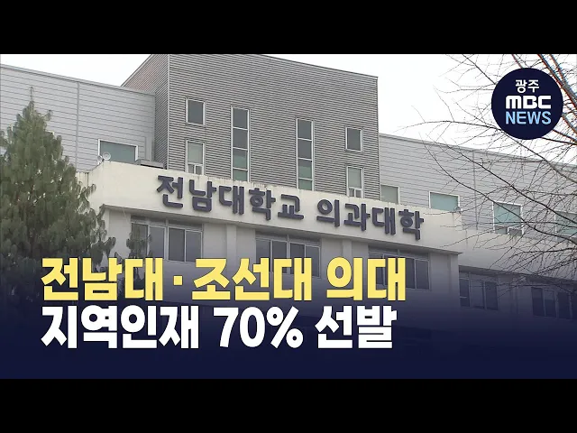 전남대와 조선대 의과대학이 2026학년도 입시에서 지역인재 전형으로 70%의 학생들을 선발합니다.각 대학에 따르면 내년도 전남대 의대의 지역 인재 전형 선발인원은 정원 126명 중 99명, 조선대 의대는 정원 125명 중 88명으로 정원의 약 70%를 지역 인재 전형으로 모집합니다.지역인재전형은 해당 지역 고등학교를 졸업한...