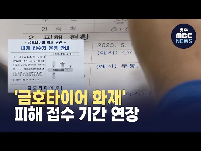 금호타이어 화재 피해 접수 기간이 다음 달 13일까지로 연장됩니다. 광주 광산구는 내일(28)까지 광산구 송정보건지소에서 피해 신고를 접수받고, 그 뒤로는 금호타이어 광주공장에서피해 신고를 받는다고 밝혔습니다. 광산구에는 오늘(27)까지 주민 9천 1백여 명이 금호타이어 화재로 두통과 목 아픔, 분진 피해 등을 입었...
