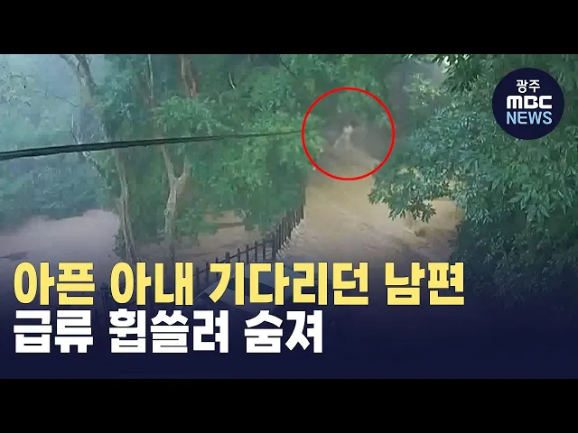 (앵커)역대급 가을 폭우가 쏟아진광주 전남에서는피해가 늘어나고 있습니다.아픈 아내를 마중 나갔던 80대 남편이 급류에 휩쓸려 숨지는안타까운 사고도 있었습니다.김규희 기자가 취재했습니다.(기자)시간당 최고 90밀리미터의 비가 쏟아진 장흥군.편도 1차선의 터널 끝에서 흙탕물이 폭포처럼 쏟아져 내립니다.산 배수로...