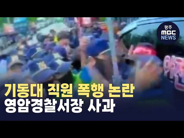 (앵커) 영암경찰서장이 집회 현장에서 기동대 직원을 폭행했다며 이를 규탄하는 온라인 글이 게시돼 논란이 일었습니다.해당 서장은 소음이 심한 환경에서 작전을 전달하기 위해 한 행동이었다며, 자신의 잘못을 인정하고 사과했습니다.김 윤 기자가 보도합니다.(기자)화물연대 조합원들과 경찰관들이 한데 모여 아수라장입...