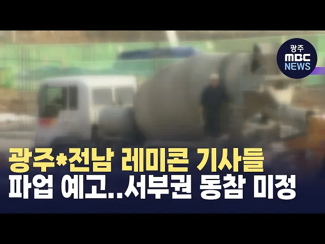 광주와 나주 지역 레미콘 운송기사들이 운반비 인상 등을 요구하며 오는 24일부터 파업을 예고한 가운데 전남 서부권 기사들은동참하지 않을 것으로 파악됐습니다. 한국노총 레미콘운송노동조합 전남 서부지부는아직 레미콘 제조사와 운반비 협상을 시작하지 않았으며, 다음 주에 예정돼 있어 파업 여부를 결정하기에는 이...