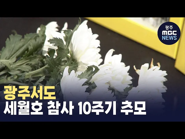 세월호 참사 10주기를 맞은 오늘(16)광주에서도 추모 행사가 이어졌습니다.광주시민분향소가 마련된 5.18민주광장에는참배객들의 추모가 하루종일 이어졌고추모공연과 이태원 참사 유가족 발언 등이이어졌습니다.광주 비엔날레 홍보를 위해이탈리아를 찾은 강기정 광주시장도이탈리아 토리노 시장과 함께가슴에 노란 리본을...