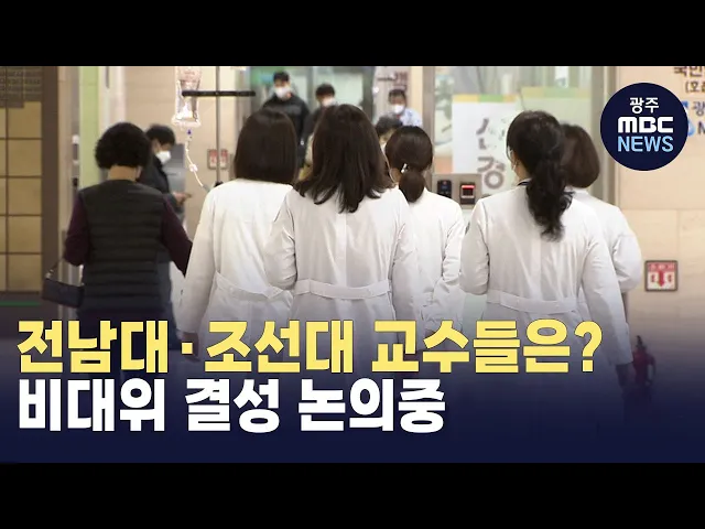 (앵커)정부의 의대 증원에 반발해 전공의와 의대 학생들이 집단행동에 나선 가운데, 전남대와 조선대 의대 교수들도 단체 행동에 나설 조짐을 보이고 있습니다.교수들은 비대위 체제 전환 여부를 결정하기로 했습니다.천홍희 기자가 보도합니다. (기자)정부의 의대 입학 정원 증원에 반발하며 전공의들이 병원을 떠난지 4주...