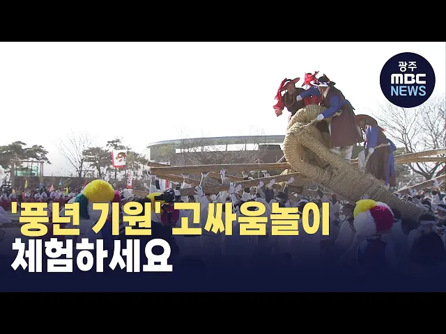 지난주 기상악화로 열리지 못했던 광주 고싸움놀이축제가내일(3)까지 칠석동 고싸움놀이테마파크 일원에서 열립니다.정월 대보름은 지났지만, 한 해 안녕과 풍년을 기원하는 이번 행사는중요무형문화재 제33호로 지정된 '고싸움놀이' 시연과각종 전통세시풍속 체험, 농악놀이 등의 공연으로 채워집니다.고싸움놀이보존회는 ...