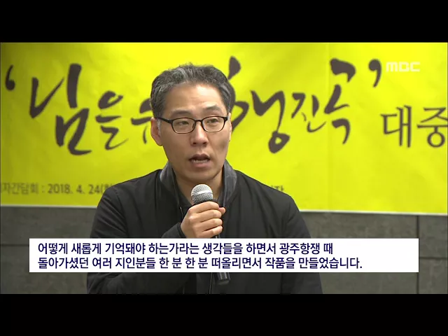 (앵커) 5.18 민중항쟁 하면 떠오르는 노래 '임을 위한 행진곡'이 황호준 씨 등 국내외 유명 작곡가에 의해 대중적인 관현악곡으로 재탄생됩니다. ◀VCR▶ (인터뷰) "광주에 대한 회상, 광주에 대한 기록 이런 것들을 거기(관현악곡)에 담아내면서 현재적 의미로서 어떻게 새롭게 기억돼야하는 가 라는 생각들을 하면서 광...