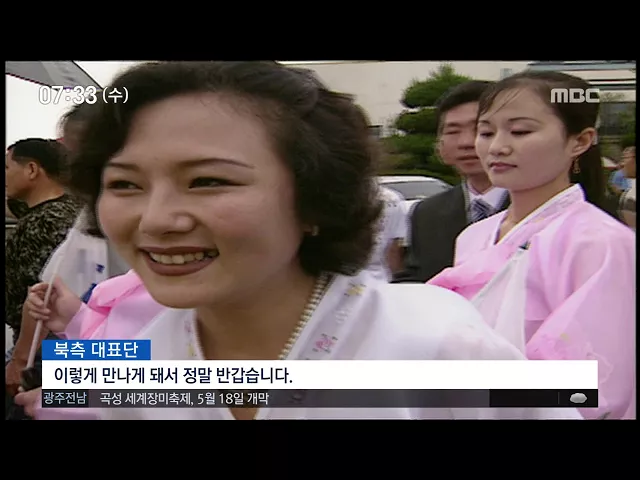 (앵커) 역사적인 남북 정상회담이 이제 보름여 앞으로 다가오면서 남북 화해 무드가 조성되고 있습니다. 이에 맞춰 10년 넘게 막혀있던 남북 교류의 물꼬를 트기 위해 가시적인 움직임이 나타나고 있습니다. 이계상 기자입니다. (기자) 6.15 공동 선언 여섯 돌을 기념해 광주-평양 직항 노선이 열리고 북측 대표단 120여 명...