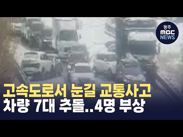 오늘(20) 오후 1시 30분쯤,나주시 문평면 무안광주고속도로무안 방면에서 주행 중이던차량 7대가 잇따라 추돌했습니다.이사고로 50대 여성과 8살, 3살 어린이 등4명이 부상을 입어 병원으로 옮겨졌습니다.경찰은 눈길에 차량이 잇따라미끄러지면서 사고가 난 것으로 보고정확한 경위를 조사하고 있습니다.
