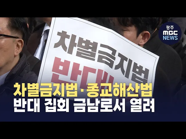 차별금지법과 종교해산법을 반대하는 집회가 광주에서 열렸습니다.광주·전남·전북지역 교회 관련 단체 등은 광주 금남로 일대에서 집회를 열고 이단·사이비에 대한 비판이혐오표현으로 규정될 수 있고,종교 단체 해산 여부를 행정이 결정하는 것은정교분리 원칙에 어긋난다며해당 법안 처리를 반대했습니다.