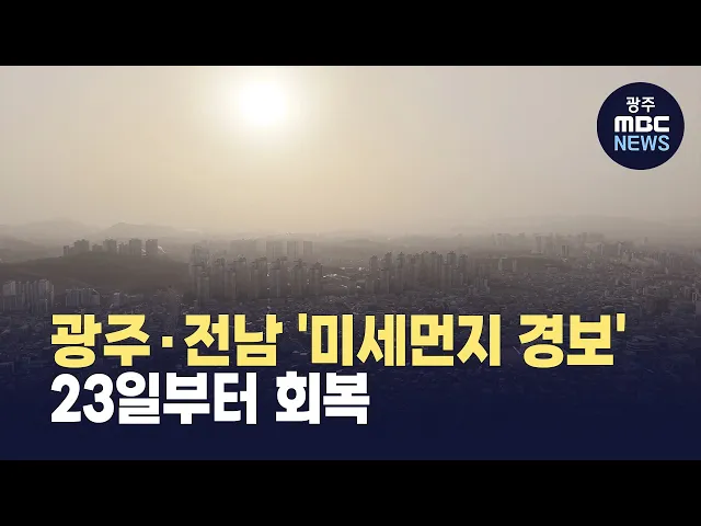 현재 광주·전남 지역의 미세먼지는 '나쁨' 수준을 보이고 있습니다.한국환경공단은 미세먼지 농도가 세제곱미터당 300 마이크로그램 이상이 2시간 넘게 지속됨에 따라 오후 5시를 기해 전남 서부권에 발령된 미세먼지 경보를광주와 전남 중부권까지 확대했습니다.공단은 호남권 미세먼지 농도가 내일(23)부터 낮아져 '보통'...