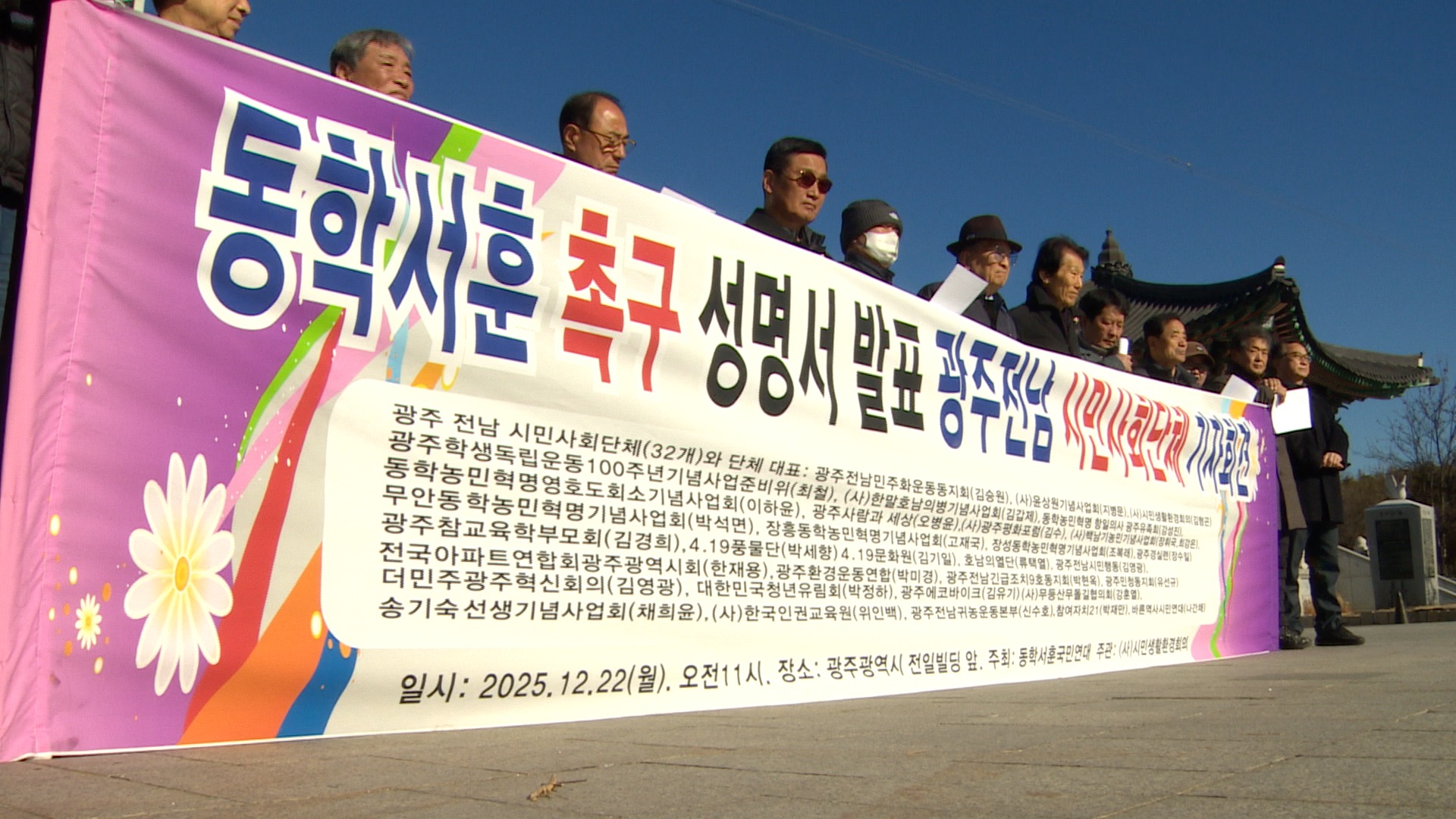 동학서훈국민연대 등은 오늘(22) 전일빌딩 앞에서 기자회견을 열고 "전봉준 등 2차 동학농민혁명 참여자들을 독립유공자로 서훈할 것"을 촉구했습니다.단체는 "이재명 정부는 한국 민주주의의 시작으로 동학농민혁명을 자주 거론하고 있다"며 "하지만 전봉준 등 항일 동학농민혁명군의 희생은 아직까지 국가로부터 인정받지...