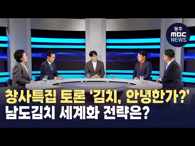 (앵커)K-푸드 열풍 속에 김치 역시 사랑을 받으면서김치산업 육성과 함께 남도김치 세계화에 대한 관심이 높아지고 있습니다. 광주MBC가 김치와 관련된 기관들을 초청해 김치산업이 순항하고 있는지, 또 목표와 비전을 위해 보완해야 할 점은 무엇인지를 들어봤습니다. 정용욱 기자입니다. (기자)광주MBC 창사 59주년 특집...