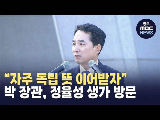 (앵커) 정율성 사업과 관련해 연일 반대 발언을 이어온 박민식 국가보훈부 장관이 광주를 찾았습니다.제94주년 학생독립운동 기념식에참석하기 위해서였는데요.기념식에 참석한 이후 보훈단체 회원과 함께정율성 흉상과 생가도 방문했습니다.천홍희 기잡니다.(기자)제94주년 학생독립운동 기념식이 광주에서 열렸습니다.'타...