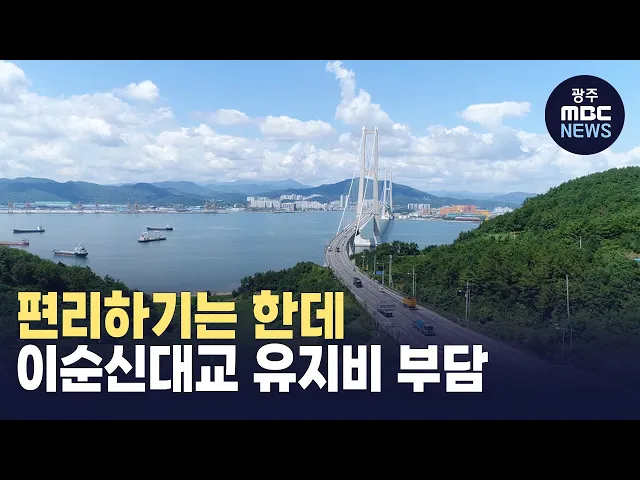 (앵커)여수와 광양을 잇는 이순신대교가 준공된 지 올해로 10년입니다. 이동 거리가 줄면서 지역발전에 좋은 영향을 주고 있지만 한해 수십억 원에 달하는 유지 관리비가 큰 부담입니다.문형철 기자입니다. (기자) 여수와 광양을 연결하는 길이 2.3km의 이순신대교. 2백m 높이의 케이블 위에서 작업자들이 구조물 상태를 ...
