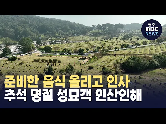 (앵커) 추석 명절인 오늘(29일) 광주 망월공원묘지에는 성묘 행렬이 이어졌습니다. 성묘객들은 조상님께 정성스레 준비한 음식을 올리는가 하면, 조카, 손주들도 함께해 가족애를 다지는 시간을 보냈습니다. 김초롱 기자의 보도입니다. (기자) 광주 북구의 망월공원묘지입니다. 추석 명절을 맞아 성묘객이 가득합니다. 묘 ...