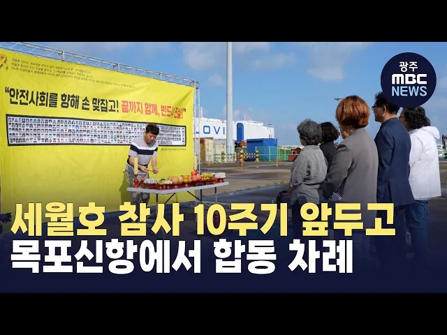 오늘 목포신항에 있는 세월호 선체 앞에서 세월호 유가족을 비롯한 시민들이 함께 추석맞이 합동 차례를 진행했습니다. 세월호 잊지 않기 목포지역 공동실천회의 주관으로 열린 행사에서 참석자들은 세월호 참사 희생자들을 추모하고, 참사 10주기를 앞두고 안전사회 건설을 위해 끝까지 함께할 것을 다짐했습니다.