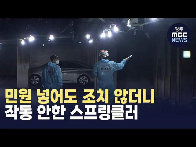 (앵커)지난 금요일에 있었던 광양 아파트 주차장 화재, 취재해 보니 주차장내 스프링클러가 작동하지 않아 불이 더 커진것으로 나타났습니다 주민들은 수년 전부터 소방시설에 문제가 있다고 민원을 넣었지만 제대로 된 조치는 없었습니다. 보도에 김단비 기자입니다. (기자)지난 22일, 자동차 10여 대가 불타버린 광양 아...