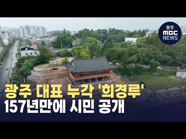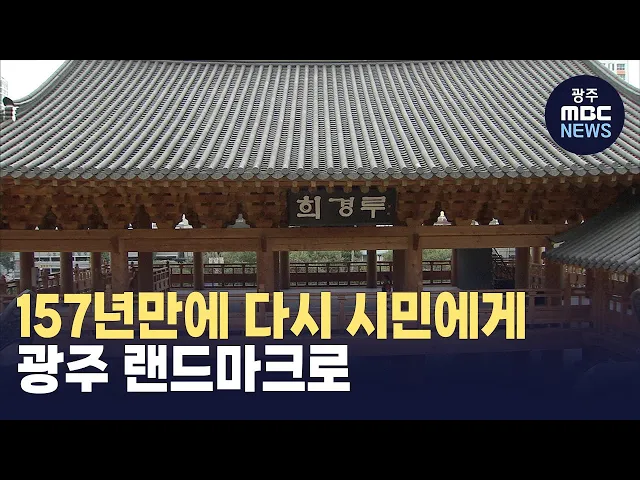 (앵커) 호남 지역 대표 누각인 '희경루'가 157년만에 다시 시민들에게 모습을 드러냈습니다. 동방에서 으뜸가는 누라고 칭송 받을 정도로 당시에 빼어난 자태를 뽐냈던 것으로 기록돼 있는데요. 광주시는 희경루를 역사문화도시 광주를 알리는 문화콘텐츠로 활용한다는 계획입니다. 천홍희 기자가 희경루 중건식을 다녀왔습...