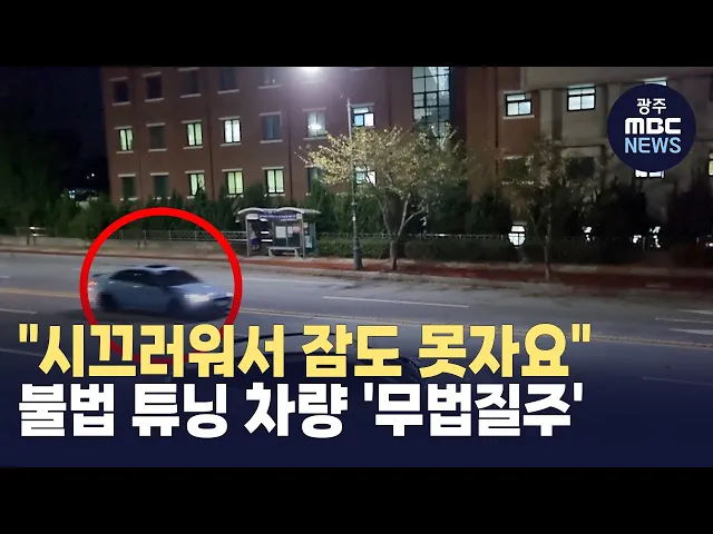 (앵커) 불법 튜닝을 한 차량들의 무법질주가 도심에서 공공연하게 이뤄지고 있습니다. 굉음을 내며 내달리는 불법 차량들로 인해 인근 주민들은 불편을 겪고 있고 사고 위험도 매우 크다고 합니다. 서일영 기자가 취재했습니다. (기자)도심 코너길에서 시속 100km에 가까운 속도로 차량이 질주합니다. 빨간불에도 신호를 위...