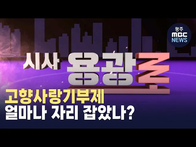 추석 연휴를 앞두고 '고향사랑기부제'에 대한 생방송 토론이 잠시 뒤 진행됩니다. 광주MBC는 저녁 9시부터 생방송되는 시사프로그램 '시사용광로' 시간에 올해부터 시작된 고향사랑기부제의 효과를 점검해 보는 한편 활성화 대책을 진단합니다. 오늘 토론은 구복규 화순군수 전라남도 박현식 자치행정국장 농촌경제연구원 ...