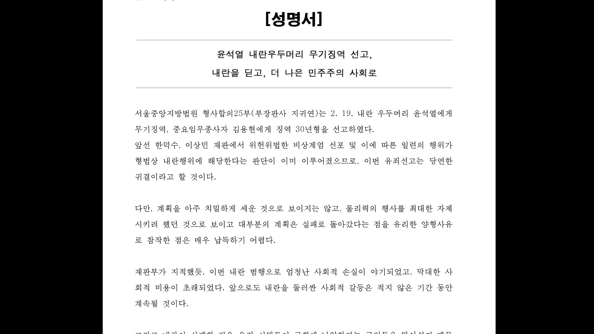 민변 광주전남지부 "내란 실패 참작한 무기징역 선고 납득 어려워"