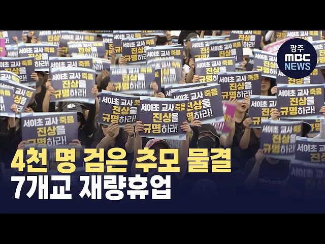 서이초 교사 49재를 맞아 열리는 공교육 멈춤의 날에 광주에서도 7곳이 동참한 것으로 나타났습니다. 전국교직원노동조합 광주*전남 지부에 따르면 공교육 멈춤의 날에 맞춰 광주에서 휴업을 결정한 학교는 7개이고, 연가와 병가를 신청한 교사는 360여명으로 집계됐습니다. 전남에서는 당초 2개 학교에서 재량휴업을 검토...