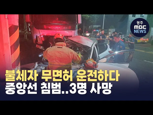 (앵커) 새벽 외국인이 몰던 승용차가 갓길에 주차돼 있던 화물차를 들이받아 차량에 타고 있던 이들이 모두 숨지는 사고가 났습니다. 경찰은 불법체류자인 외국인이 무면허 운전을 한 것으로 보고 음주 여부를 조사하고 있습니다. 천홍희 기자가 보도합니다. (기자) 119 구조대원들이 소방 구조장비를 이용해 종잇장처럼 구...