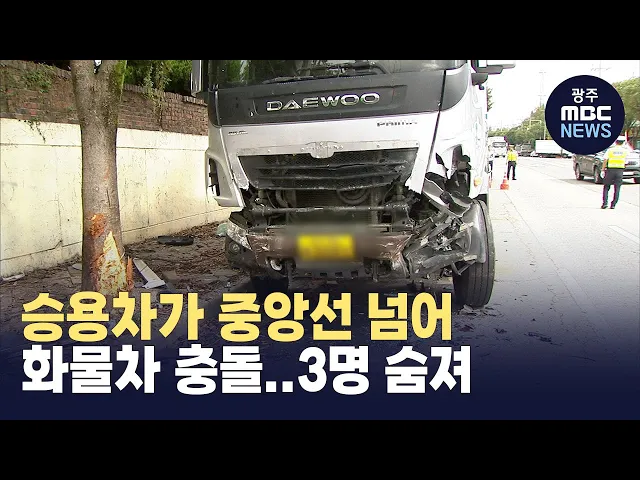 오늘(31) 새벽 1시 30분쯤 광주시 광산구 하남동의 한 왕복 6차선 도로에서 터키 국적의 20대 외국인이 몰던 승용차가 도로 갓길에 주차돼있던 화물차를 들이받았습니다. 이 사고로 운전자와 동승자 등 3명이 다쳐 병원으로 옮겨졌지만 모두 숨졌습니다. 경찰은 승용차 운전자가 중앙선을 넘어가 사고를 냈다는 목격자의 말...
