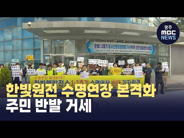 (앵커)한국수력원자력이 본격적으로 영광 한빛원전 1,2호기 수명연장 절차에 들어가면서 주민들의 반발이 거세지고 있습니다. 주들은 후쿠시마 오염수까지 방류된 마당에 노후 원전 수명 연장까지 진행된다며, 불안한 마음을 드러냈습니다. 천홍희 기자가 보도합니다. (기자)오늘(25) 오전, 영광군 주민들이 한 건물 안을 ...