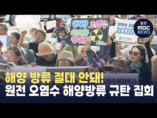 (앵커) 주말을 맞아 일본 정부의 원전 오염수 해양방류에 항의하는 시민들이 거리로 나섰습니다. 시민들은 일본과 한국 두 정부를 싸잡아 강도높게 비판했습니다. 조현성 기자의 보도입니다. (기자) 후쿠시마 원전 오염수가 끝내 바다로 버려지기 시작하고 맞이한 첫 번째 주말, 전국동시 집중행동의 날을 맞아 광주,전남지...