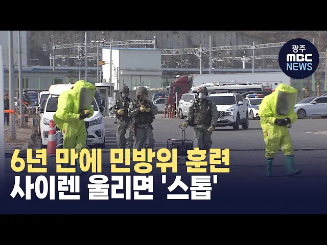 내일(23) 오후 2시부터 20분간 전국 동시 ‘공습대비 민방위 훈련’이 실시됩니다. 6년 만에 재개되는 이번 훈련 시간동안 동부소방서에서 전일빌딩, 서부소방서에서 화정역사거리, 송원대에서 무등시장사거리, 광암고가차도에서 운암시장, 월곡시장에서 산정공원로 구간에서는 차량 이동이 일시 통제됩니다.