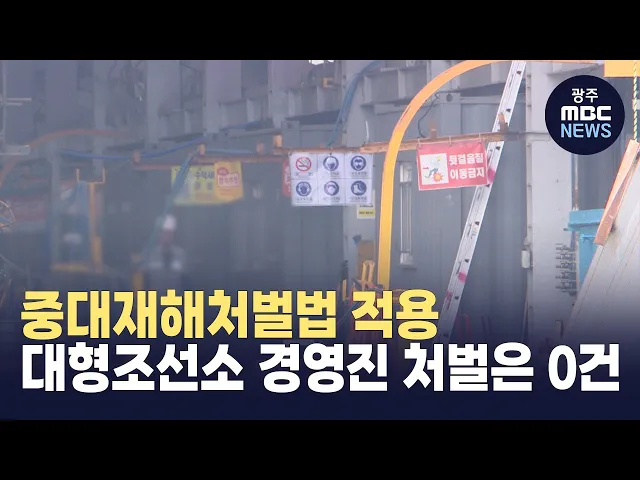 (앵커)조선업체 노동자 사망사고가 끊이지 않고 있습니다. 사고가 난 사업장들은 중대재해처벌법 적용대상 사업장들이지만,어찌된 일인지 처벌은 늦어지고 있습니다.서일영 기자가 취재했습니다.(기자) 현대삼호중공업에서는 올들어 모두 2명의 노동자가 숨졌습니다. 최근 40대 노동자가 튕겨져 나온 철판에 맞아 숨졌고 지...